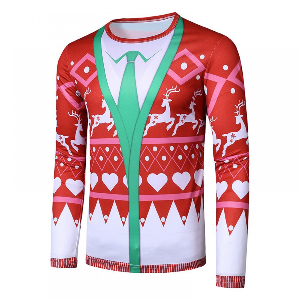 New 3D Personality Printing Fashion Men's Christmas Long-Sleeved T-Shirt