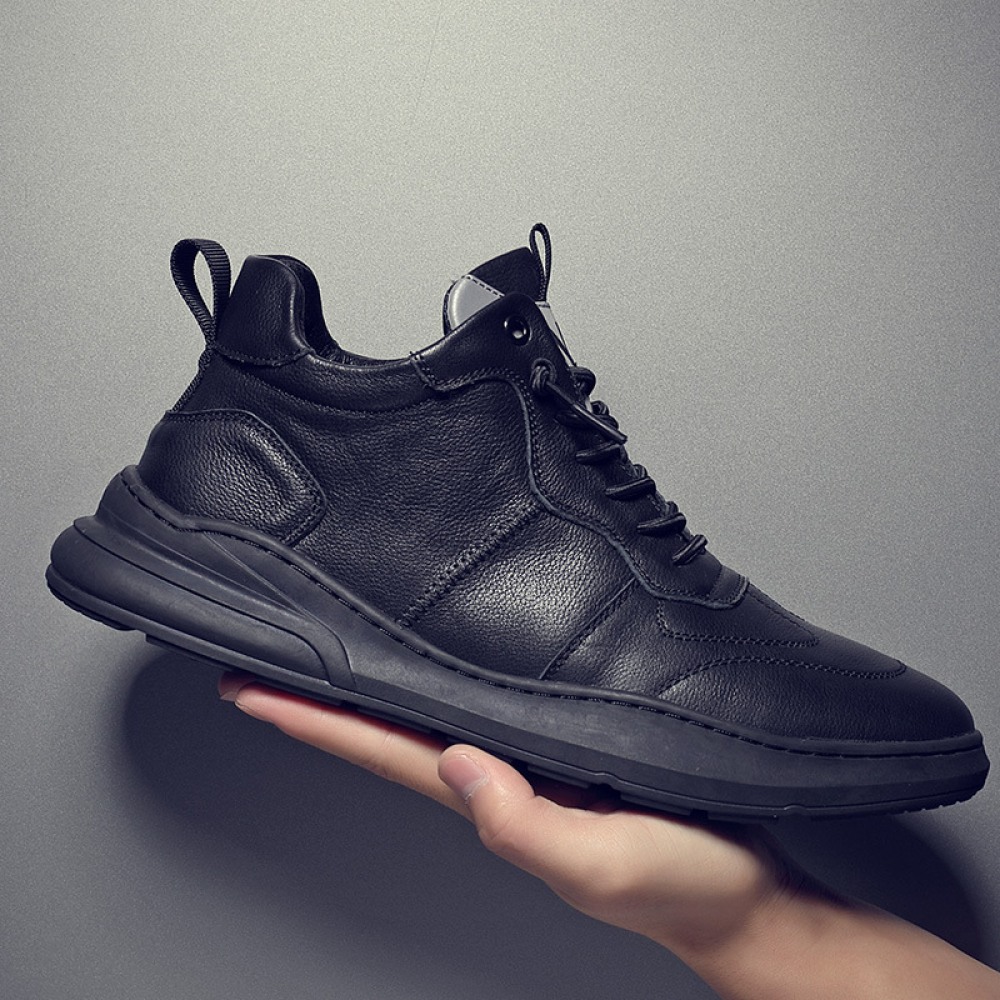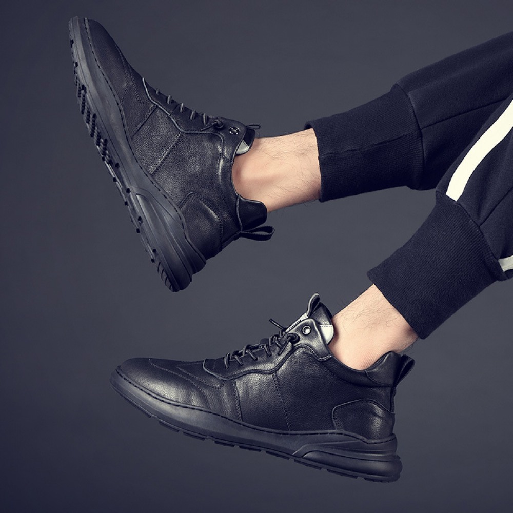 Men's Leather Mid-Top Boots High-Top Casual Shoes Increased Martin Boots Black