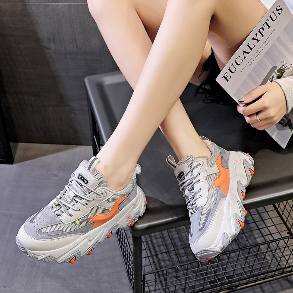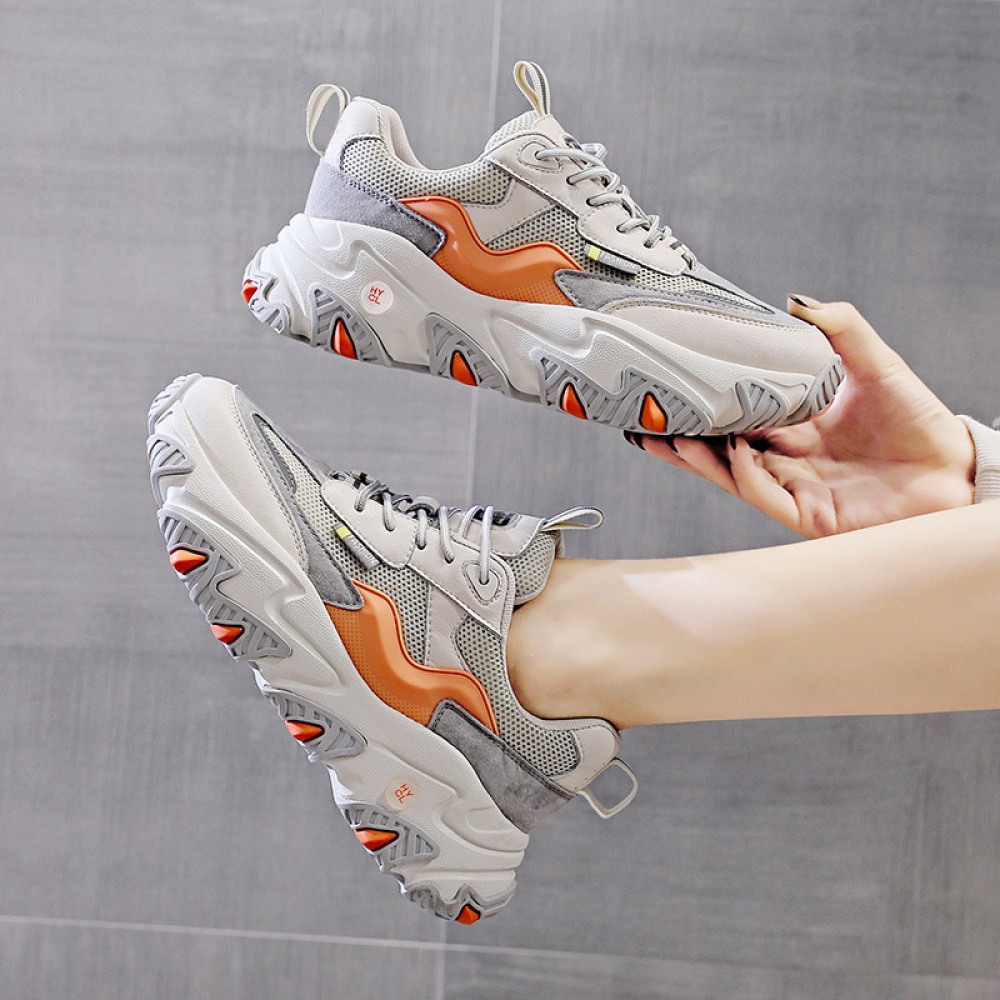Spring New Trend Mesh Breathable Soft Thick Bottom Color Matching Sports Casual Shoes