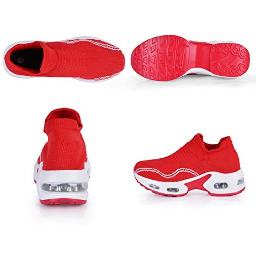 Womens Walking Shoes Sock Sneakers Slip On Mesh Platform Loafers Comfort Wedge Walking Shoes Red