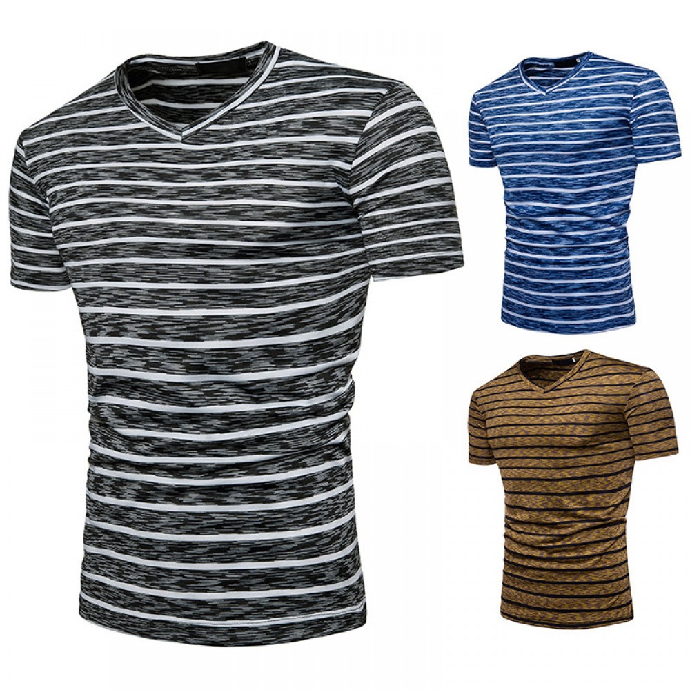 New Men's Striped Stretch Frame Plus Size Short-Sleeved T-Shirt